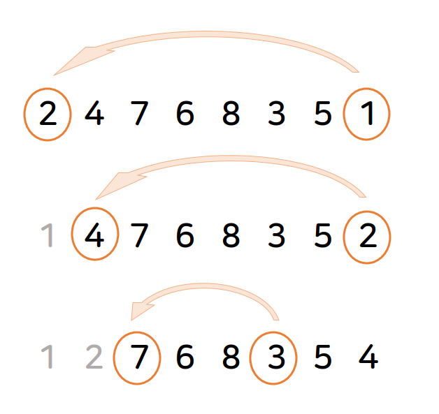 // 가장 작은 숫자를 선택해서 앞으로 보낸다. > min이 필요
